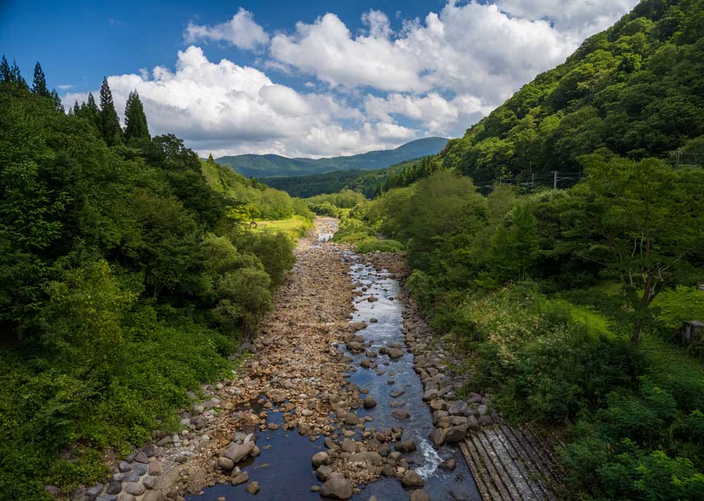 関川は妙高山の南西の笹ヶ峰から流れ出て、直江津で日本海に注がれる。