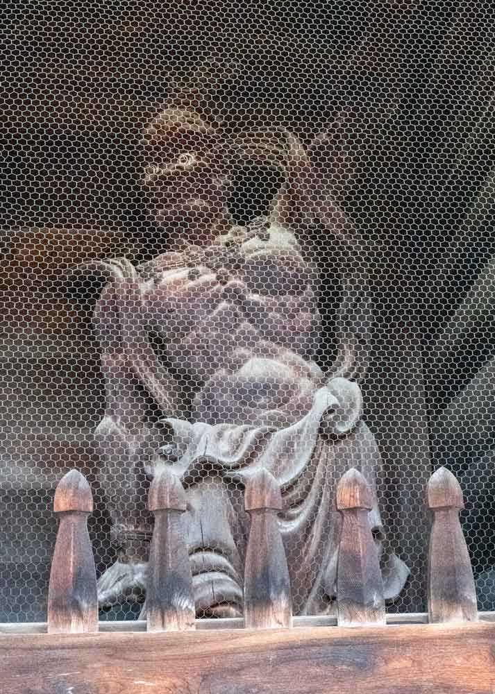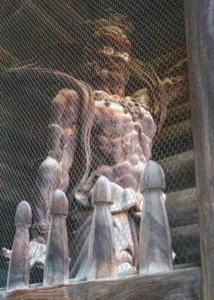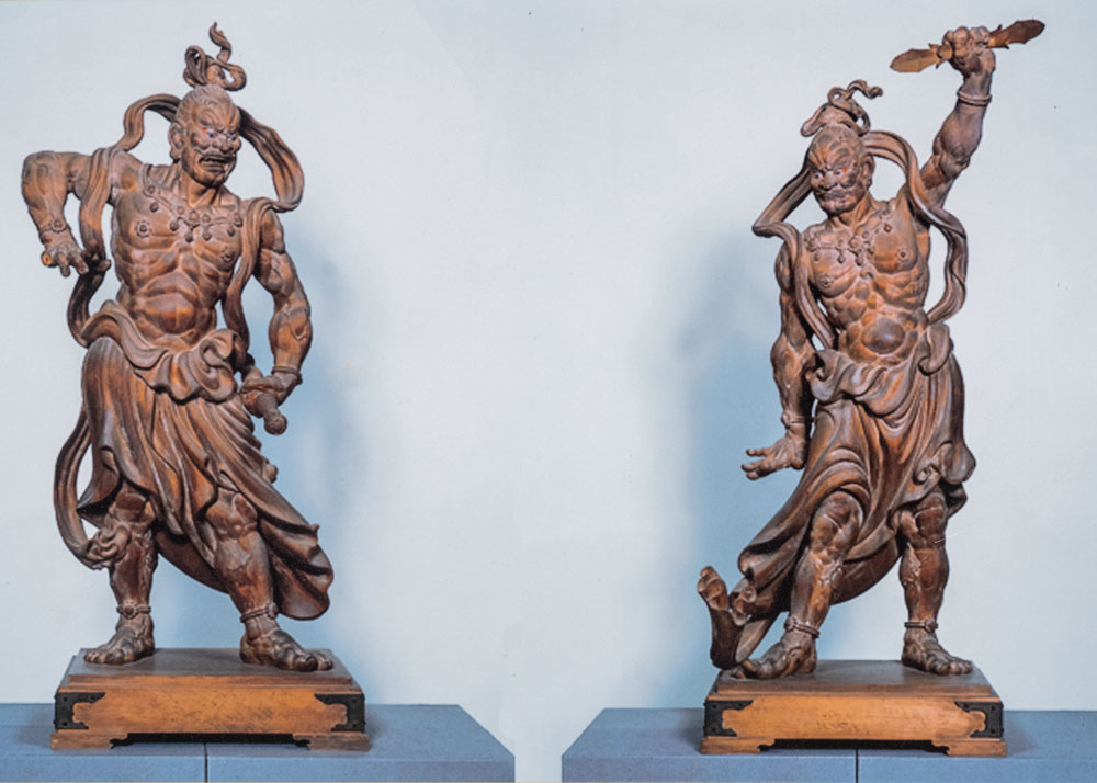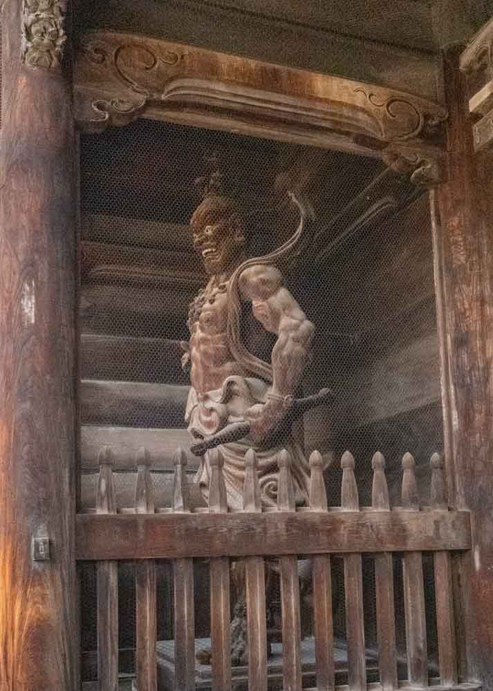 阿形像(左)と吽形像(右)のある仁王門仁王像の背面に三宝荒神像と三面大黒天
