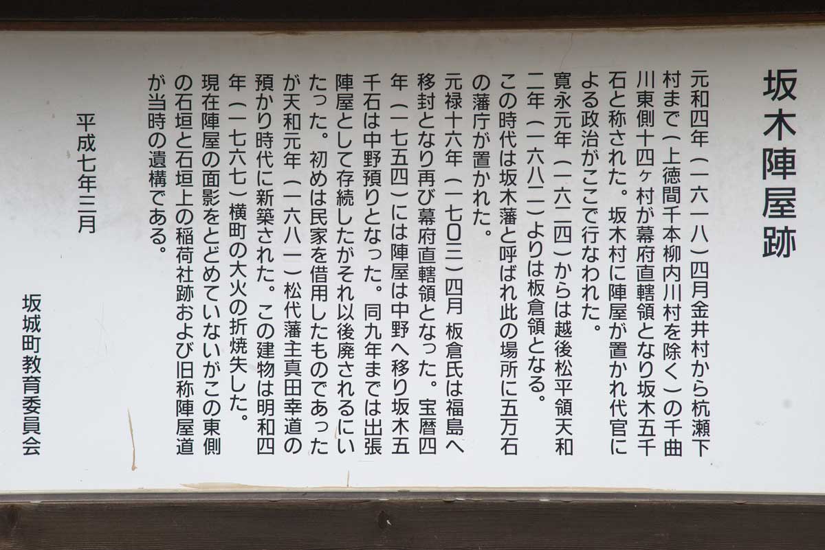 現在坂城駅前に坂城陣屋の説明書きがあり、陣屋の面影はほとんどとどめていないと言う。