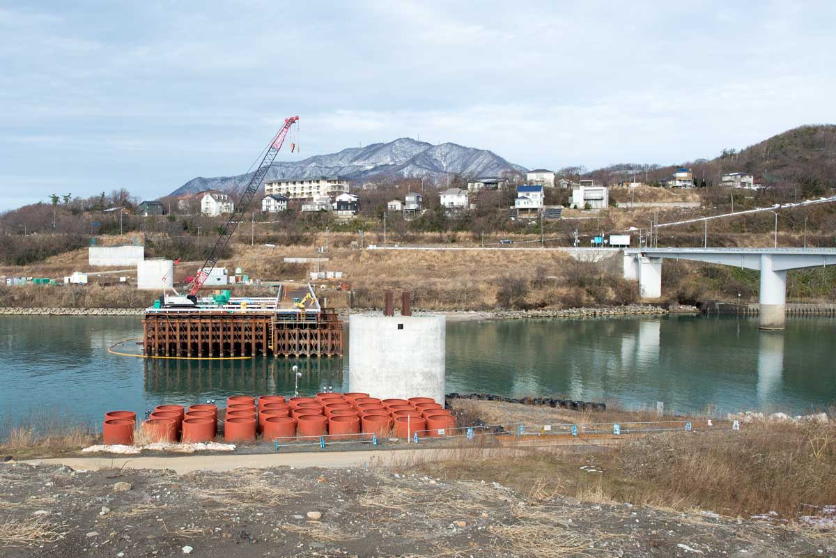| 現在の野積橋 2022年1月撮影 | 新野積橋の橋脚工事 2022年1月撮影 |