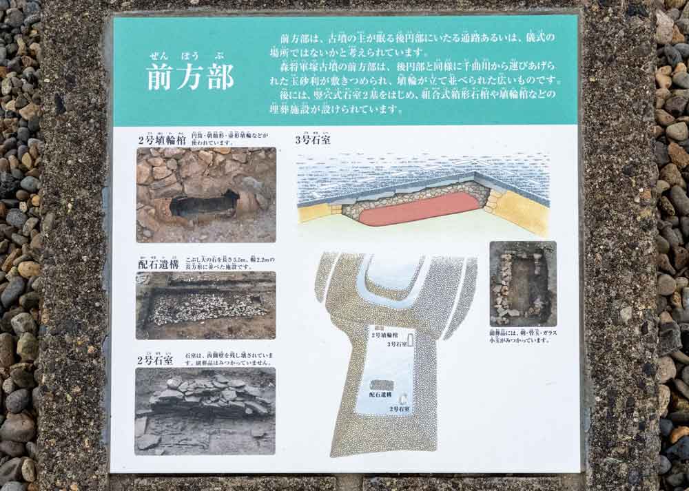 森将軍塚の麓に千曲市森将軍塚古墳館があって、竪穴式石室や出土した副葬品、埴輪などが展示されている。