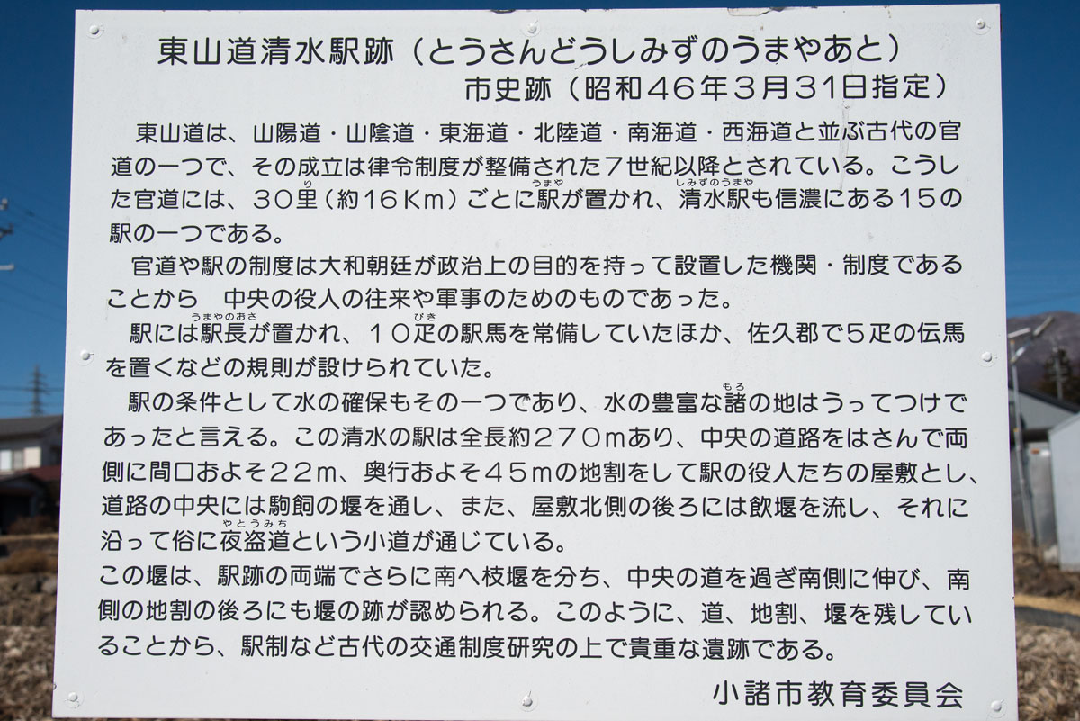 東山道 清水の駅は小諸に置かれた。