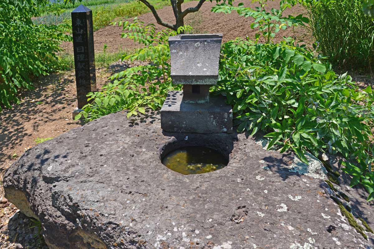 近くに塔心礎があって、この唐臼遺蹟を含めて一帯を日理駅と推定しているようだ。