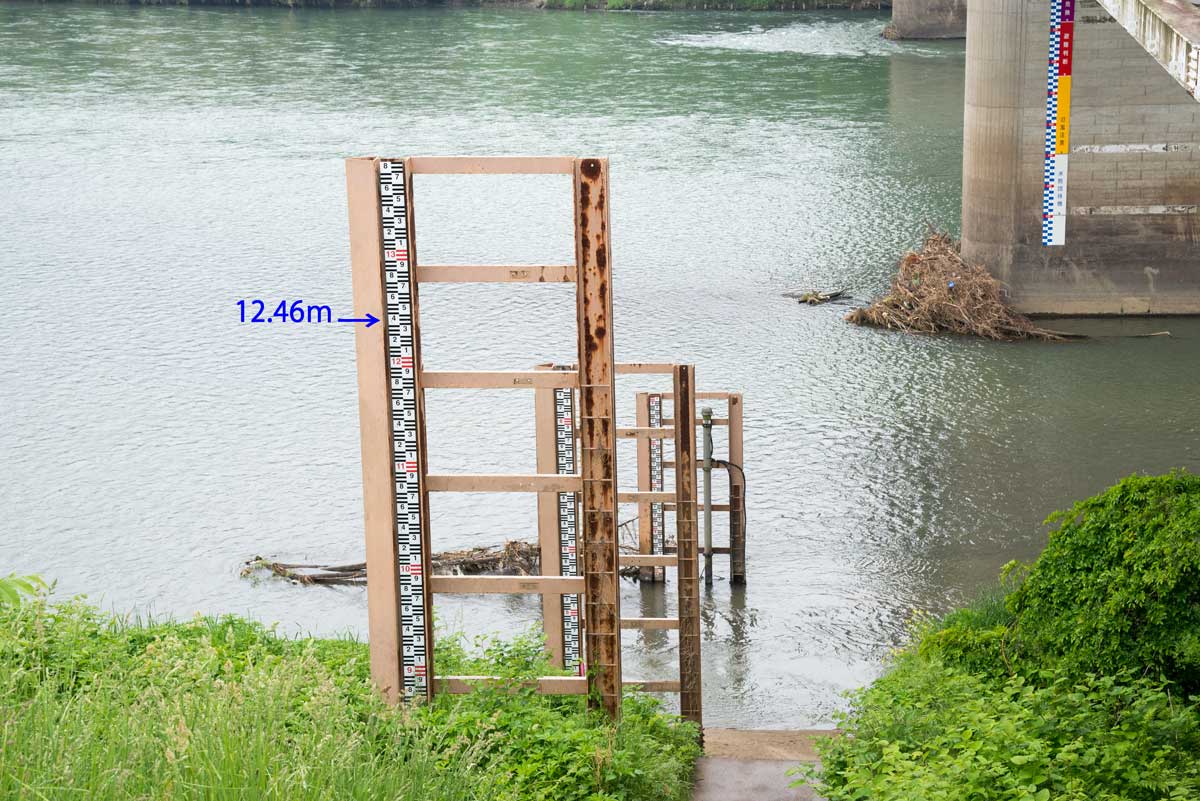 | 立ヶ花橋 | 水位はこれで観測しているようだ 最高水位12.46mは堤防を越えてしまった |