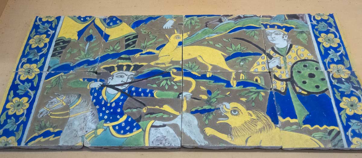 | 王族胸像 左古代エジプト 5千年前 右アッシリア 3千年前 | 狩猟文タイル ペルシャ | 緑釉陶 銀火深鉢 ペルシャ |