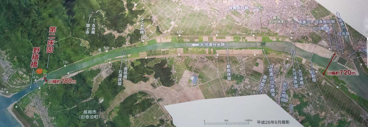 大河津分水路入口側 俯瞰図 大河津分水路出口川 俯瞰図