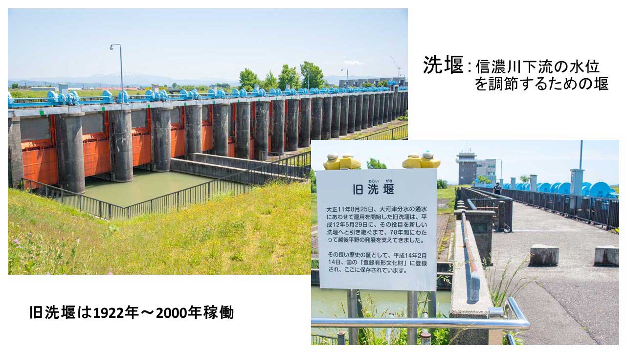 旧洗堰は1922~2000年まで稼働し、新洗堰に引き継がれた