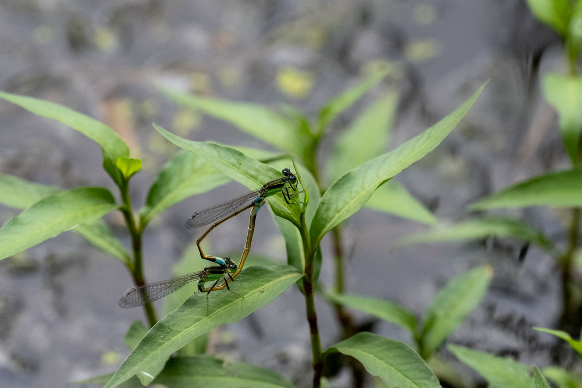 | コフキトンボ整列して休憩 2023.8.11 | セスジイトトンボ交尾 2023.8.11 |
