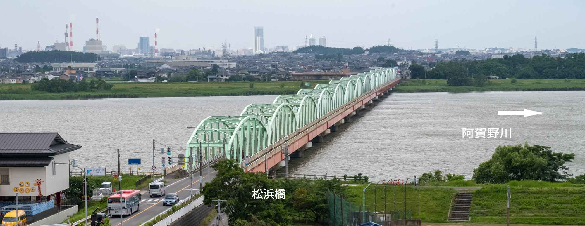 | 阿賀野川の一番下流に架かる松浜橋の長さは921.3m |