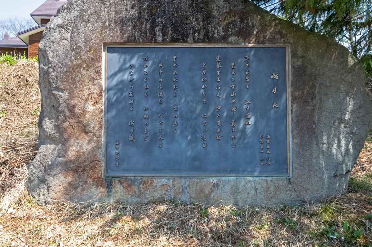 | 菜の花公園内に「朧月夜」の歌碑がある | 高野辰之は長野県中野市出身で飯山市で 小学校の教師をした時期があったという |
