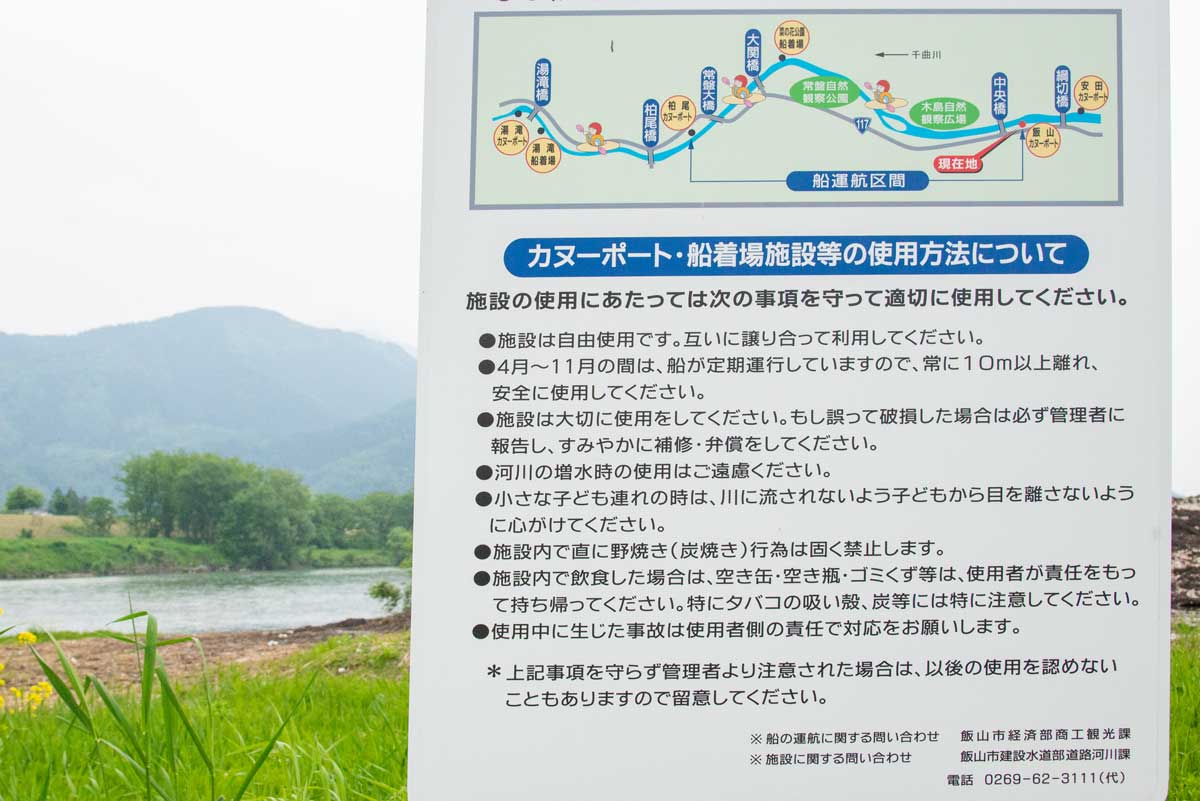 | カヌーポートの使用方法についての看板 | ここが飯山カヌーポート |