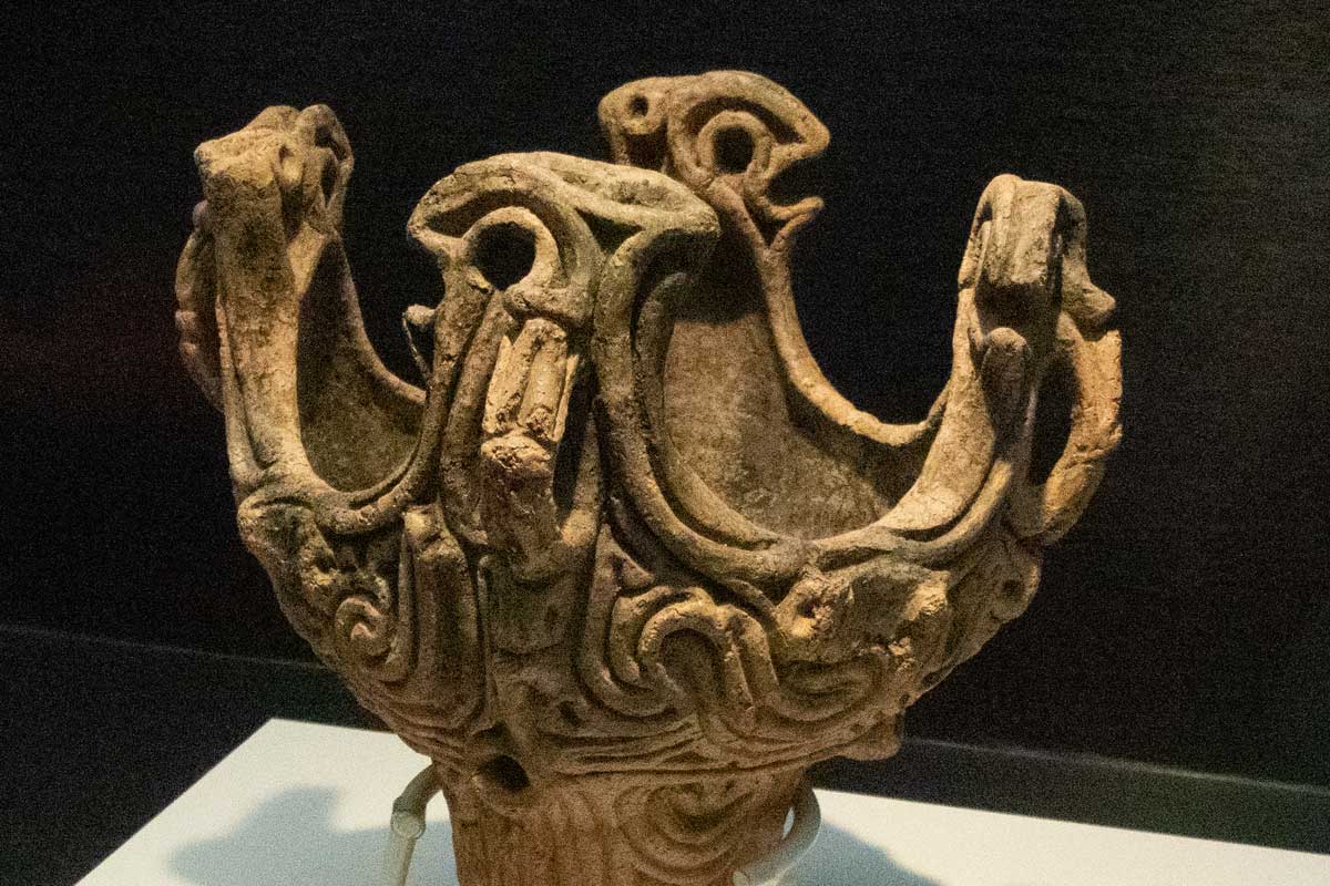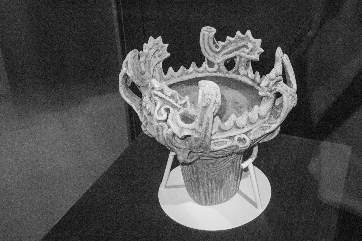 火焔土器の特徴は火焔型と同じように4つの大突起に鋸歯状のフリルが付く。