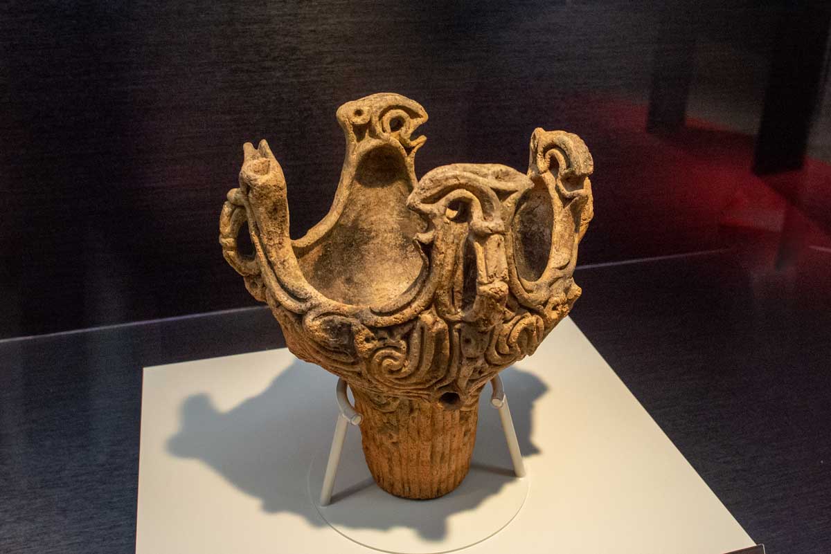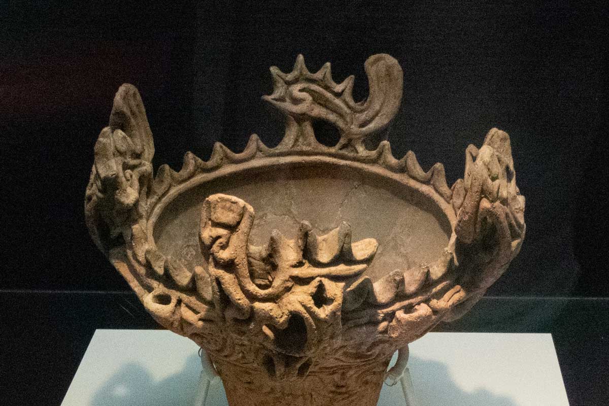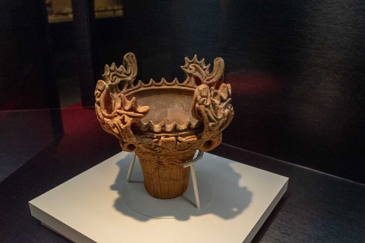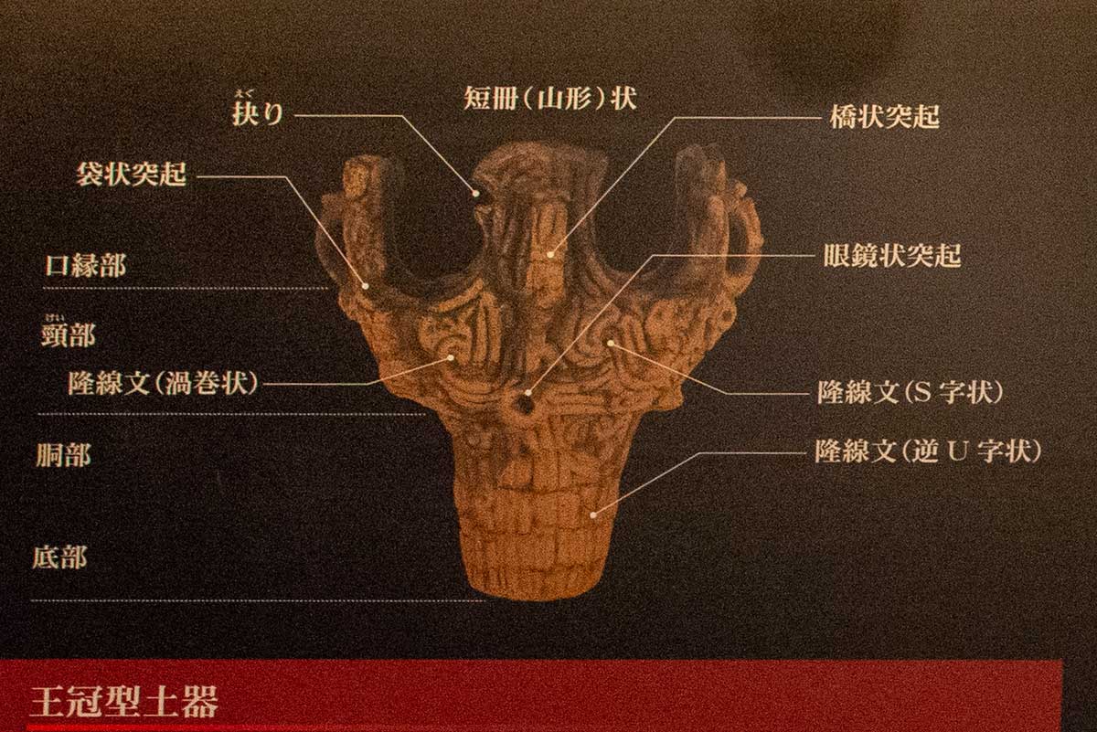口縁部に大きな突起がない深鉢型王冠が土器の特徴