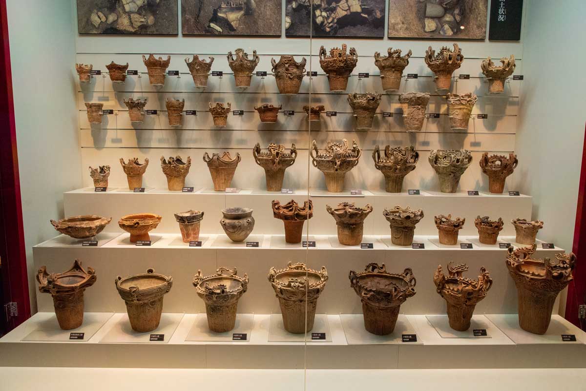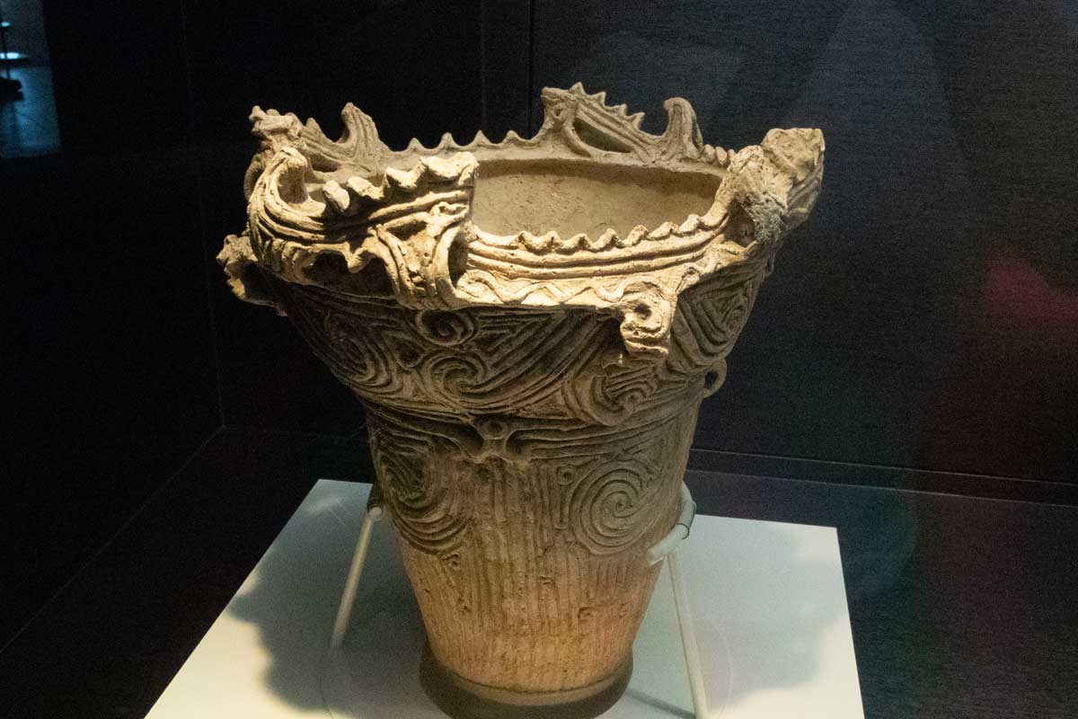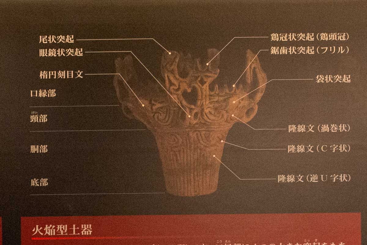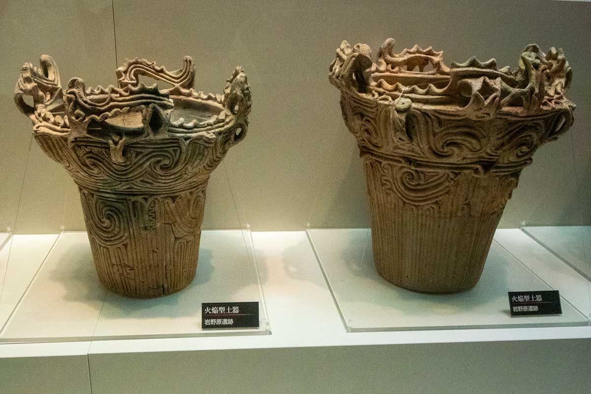 火焔型土器の特徴火焔型と王冠型の土器が勢ぞろい