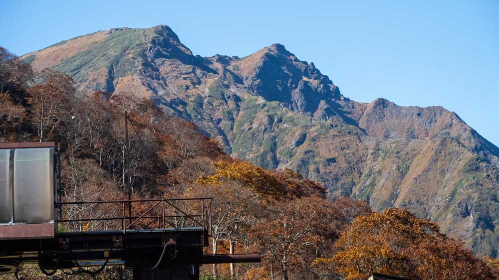 | 谷川岳ロープウエーから谷川岳東の白毛門 方面を望む | 天神平駅付近の紅葉 |