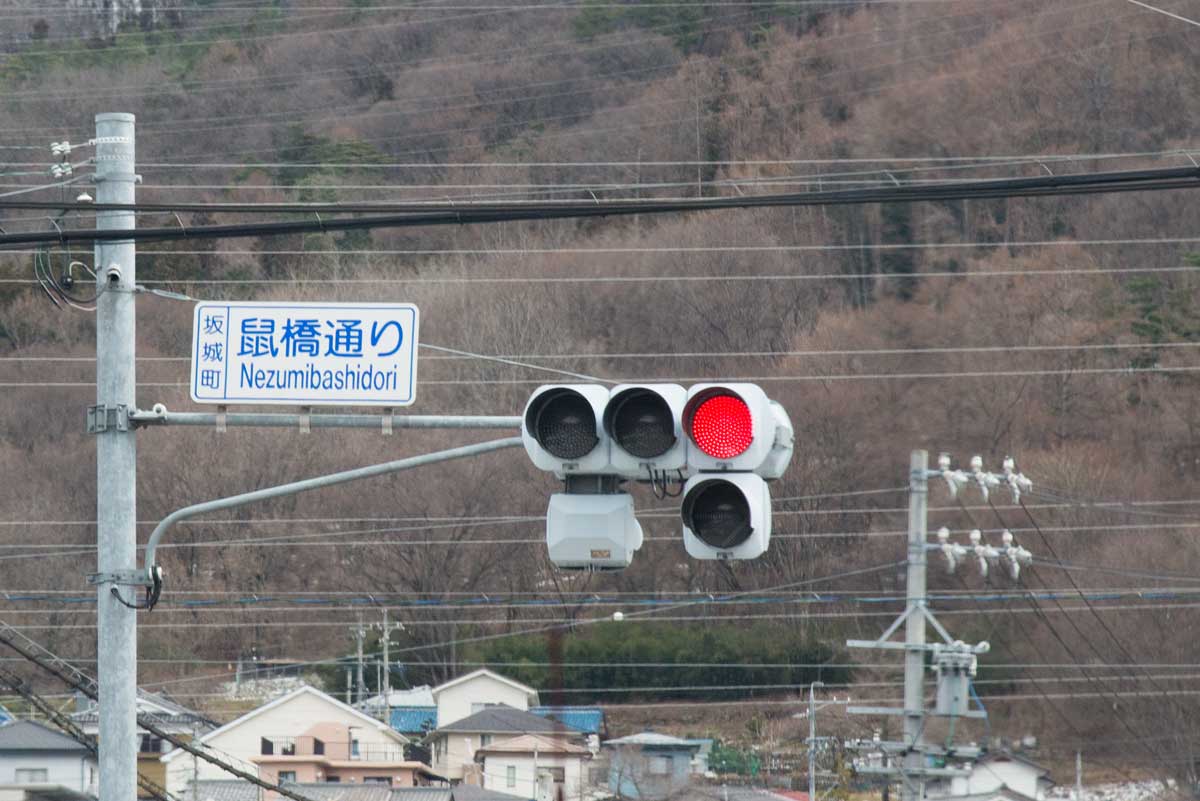 町の西に流れる千曲川にかかる鼠橋鼠橋東の通りにある信号