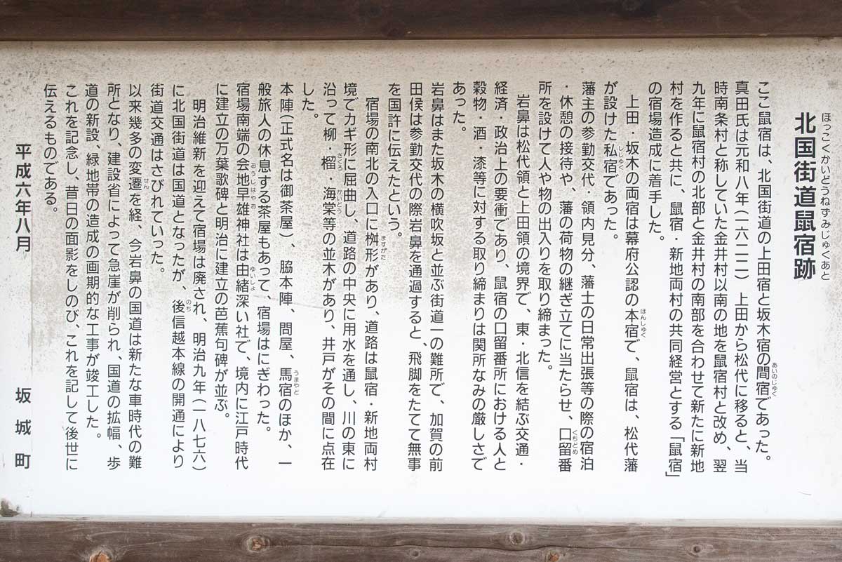 鼠宿の説明書き千曲川沿いの国道18号横に鼠宿跡がある