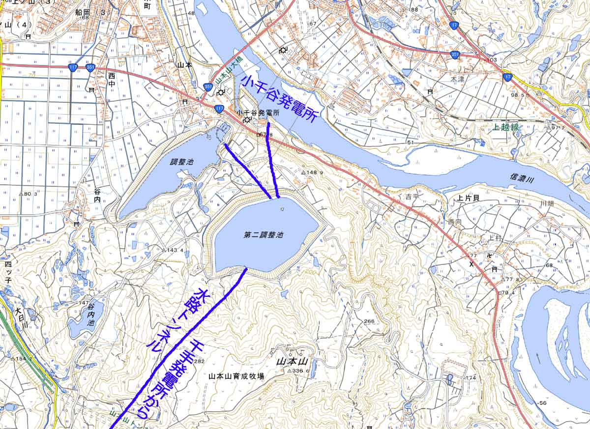 ここでは山本調整池、小千谷発電所、山本第二調整池、小千谷第二発電所について記載する。一部千手発電所含む。