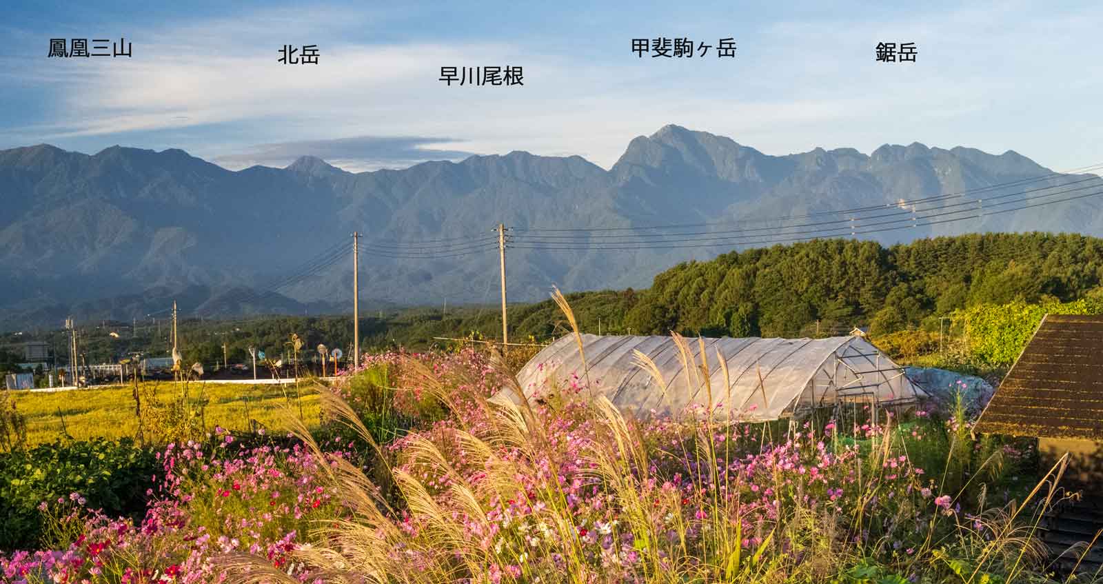 | 大泉町から西側に南アルプスを望む |