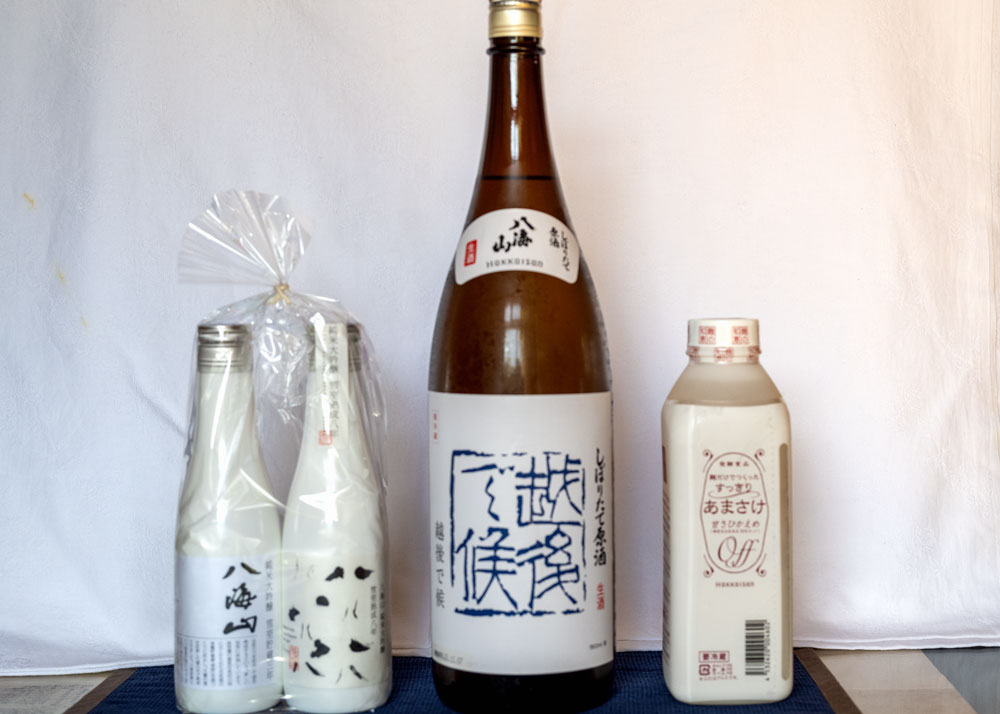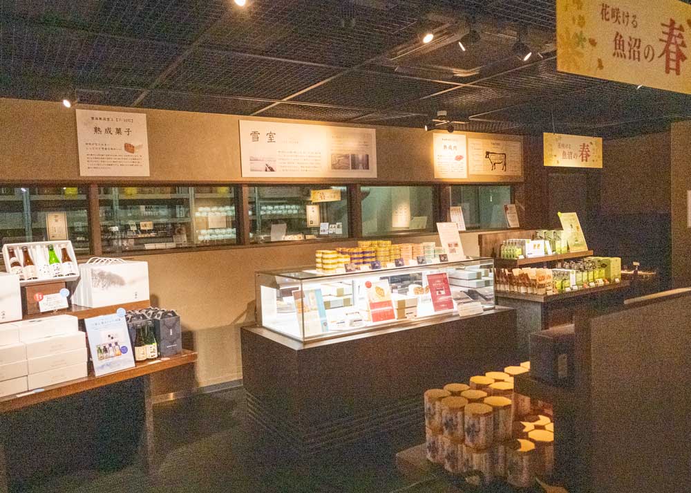 | 雪室からの冷気で冷やされている部屋に 清酒やビールを置いて販売 | 八海山 純米大吟醸 8年・3年熟成 しぼりたて原酒(生酒)・甘酒 |