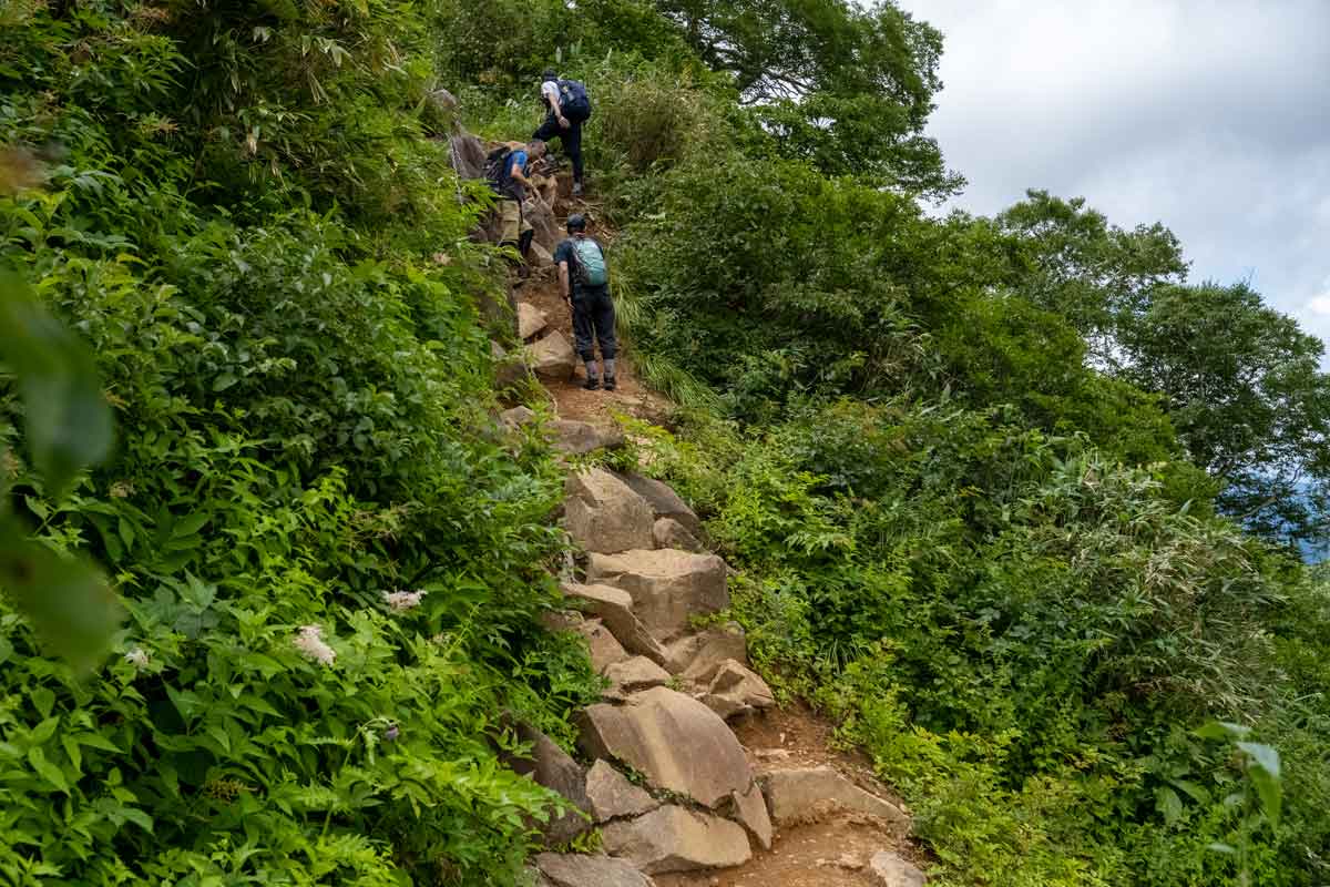 イワショウブなどの湿原植物と尾根道にタマガワホトトギス、オヤマリンドウやツバメオモ