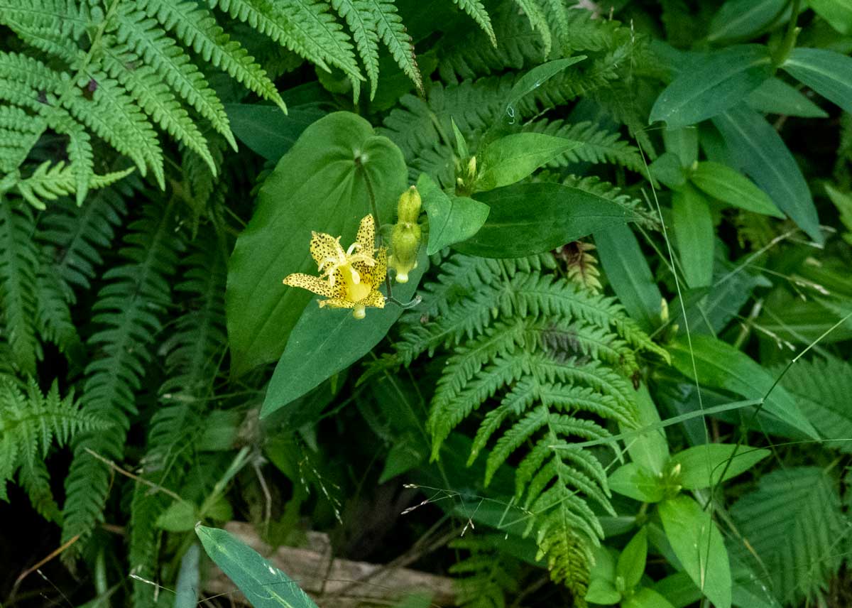 | タケシマラン(ユリ科)は赤い果実を付けていた | タマガワホトトギス(ユリ科)黄色の花を付けていた |