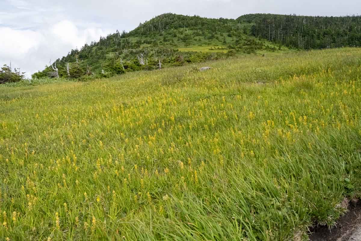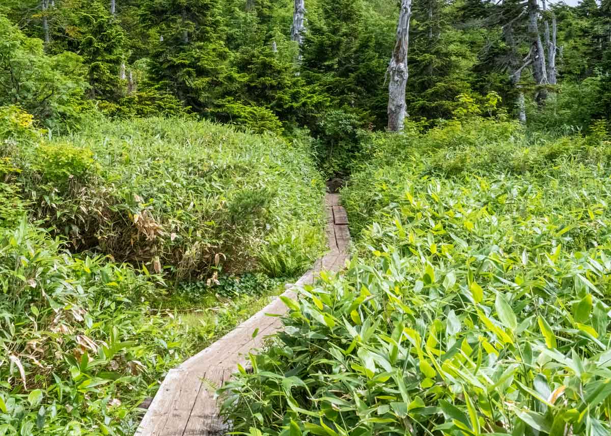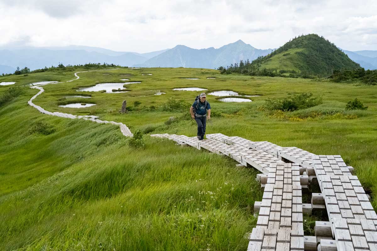 頂上付近には600haにもおよぶ広大な高層湿原とおよそ3000個所の地塘が点在していて、