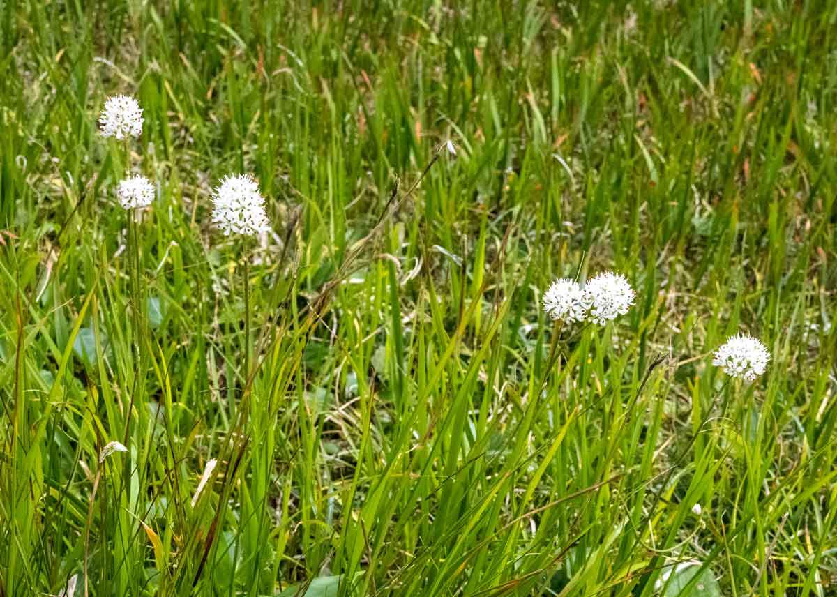 | 草原一面にキンコウカ(ユリ科)が展開した | 湿原に咲くイワショウブ(ユリ科) |