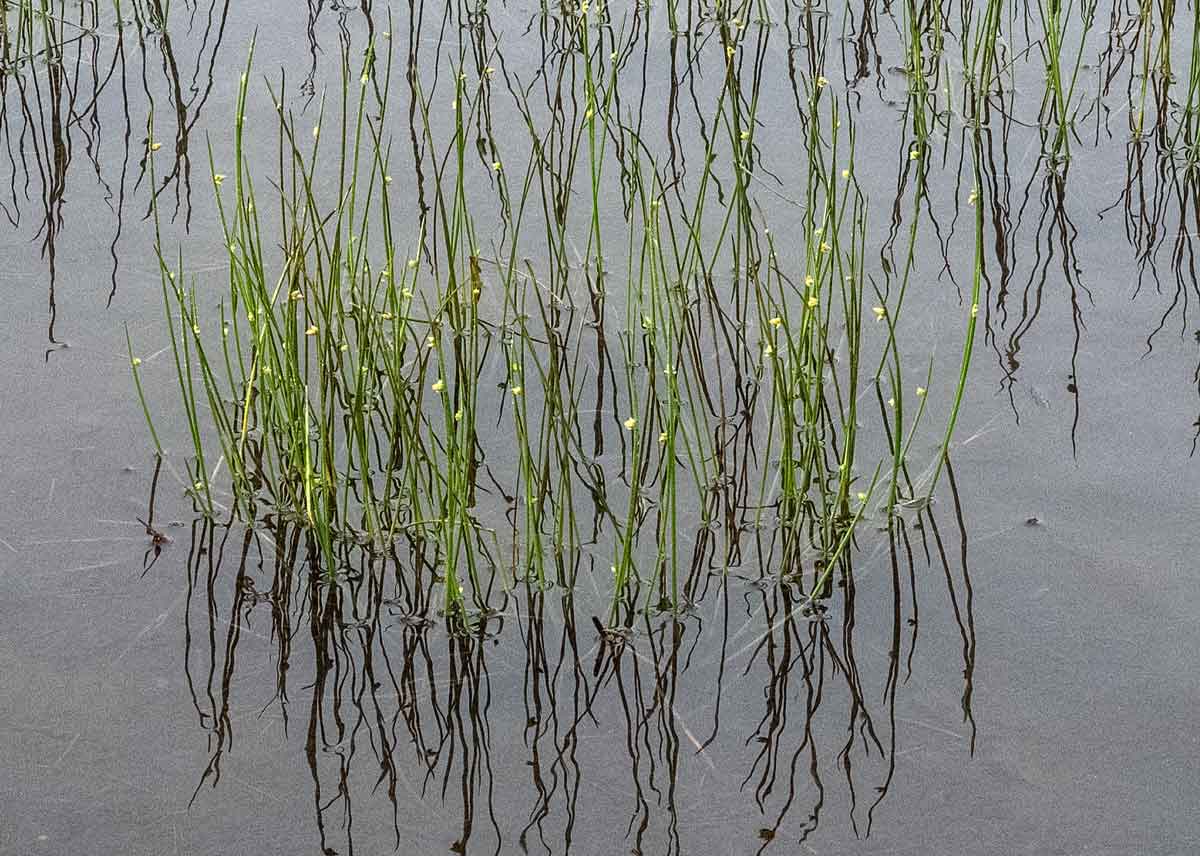 | 地塘に咲くミヤマホタルイを水田に咲く稲穂に見立てたのが苗場山の名の由来となった | ミヤマホタルイ(カヤツリグサ科)小さな花が見える |