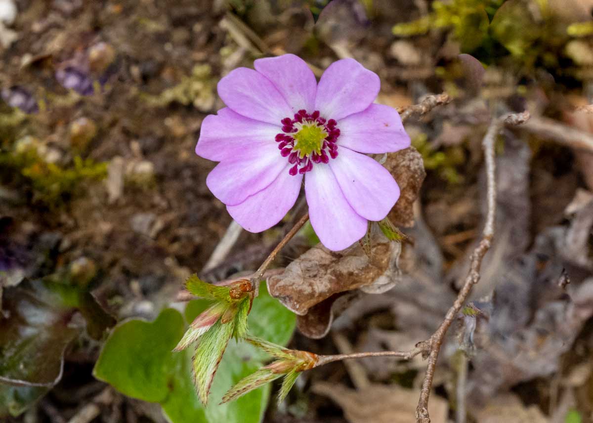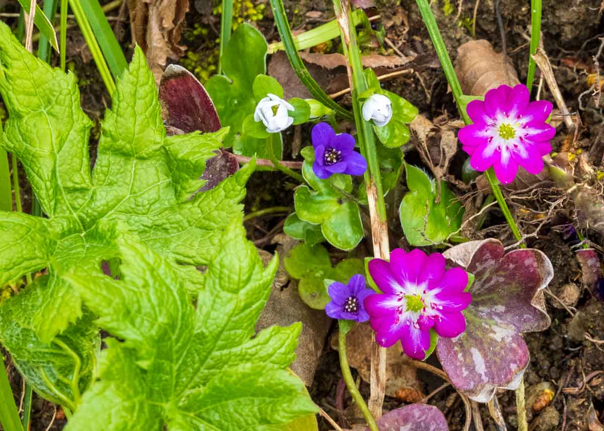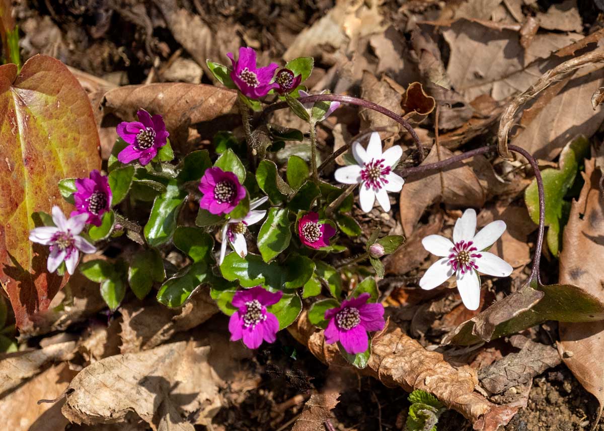 今冬の大雪の影響で例年より2週間ほど開花が遅れていた雪割草(オオミスミソウ)がようやく見頃を迎えた。
