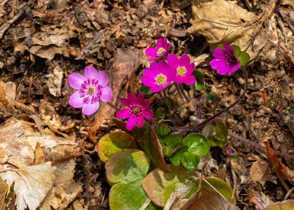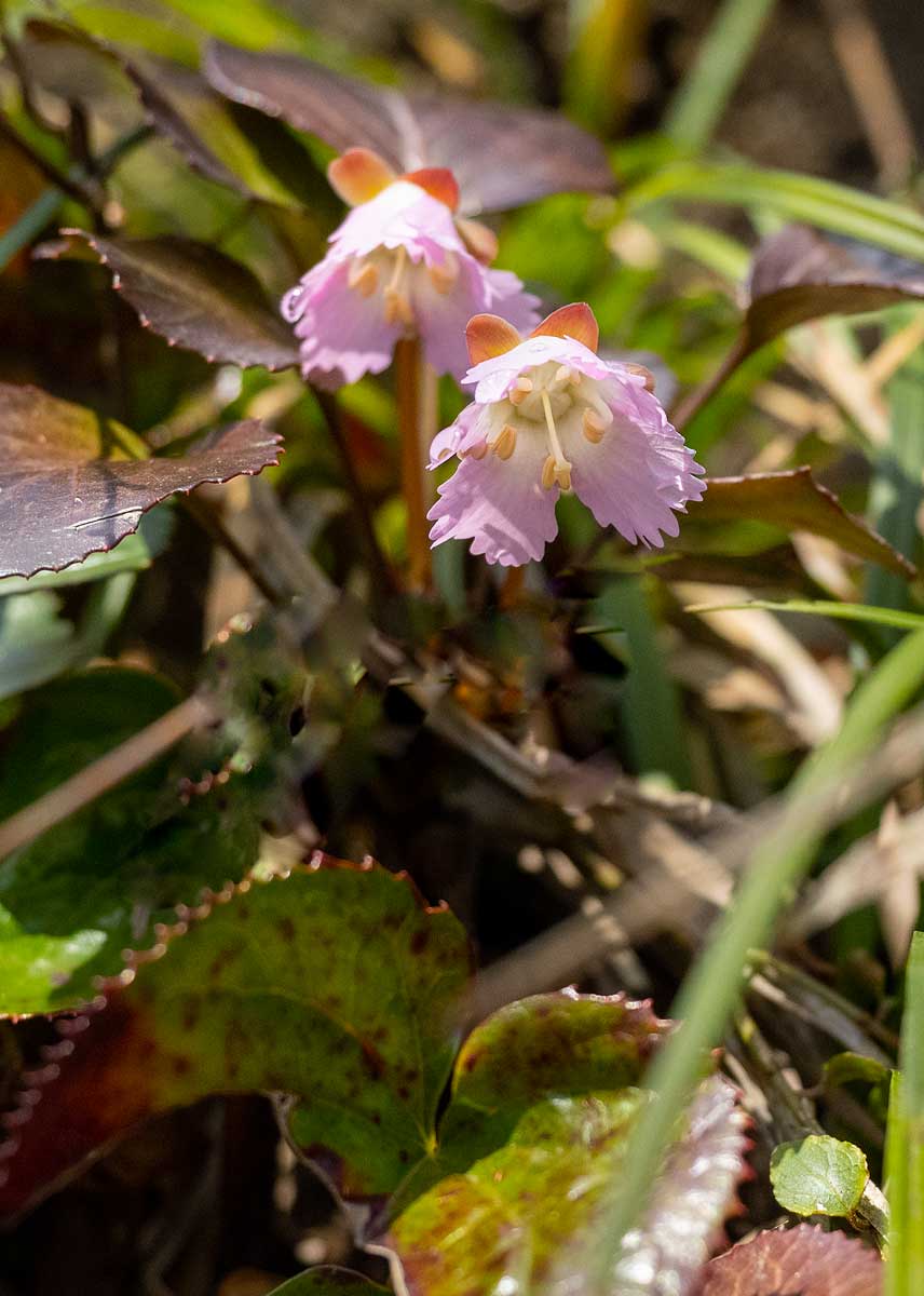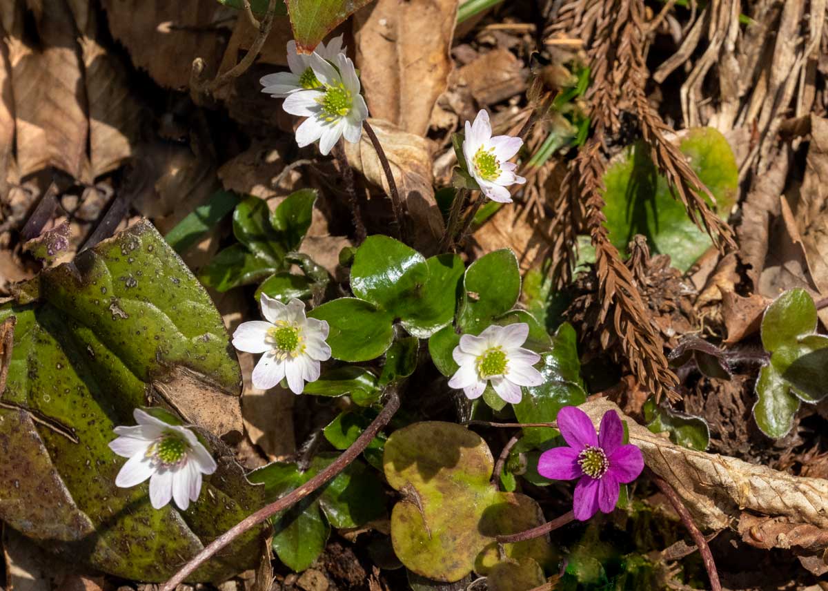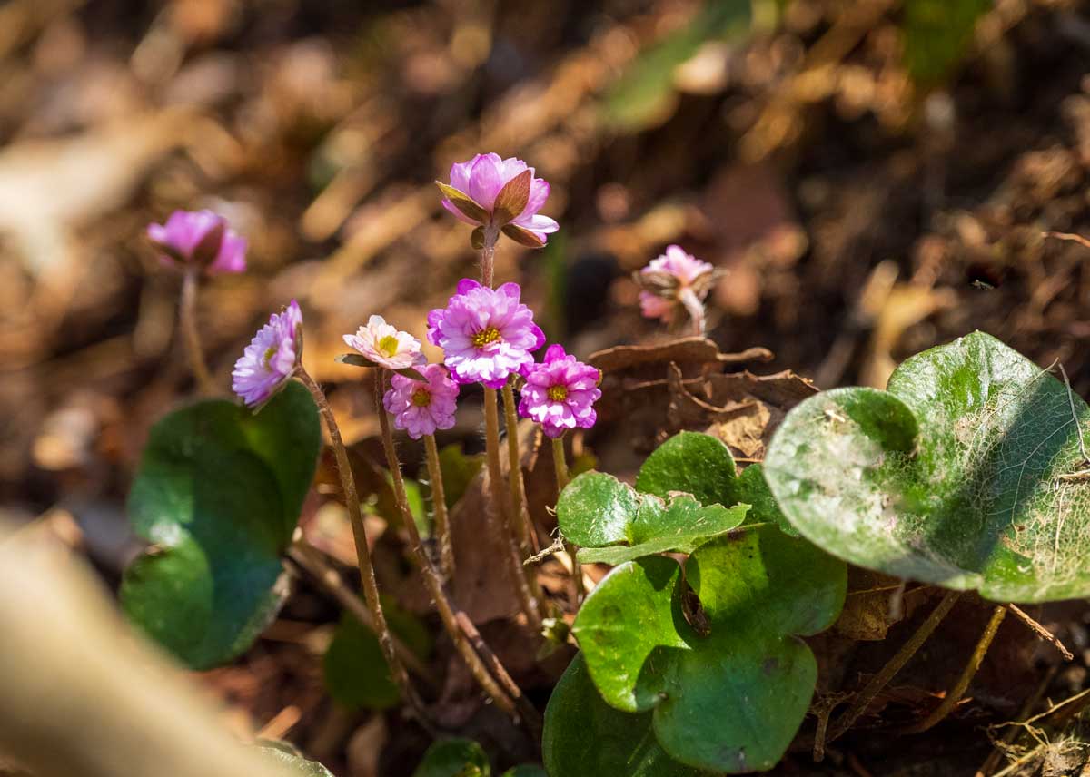 今冬の大雪の影響で例年より2週間ほど開花が遅れていた雪割草(オオミスミソウ)がようやく見頃を迎えた。